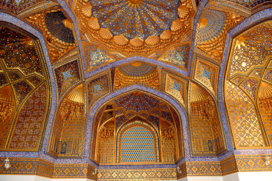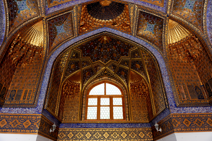 Мавзолей Ак-Сарай (Белый дворец). Строился с 1460-1470 гг. Мужская усыпальница последних темуридов располагается к юго-востоку от мавзолея Гур-Эмир. Композиционное ядро постройки-крестообразный зал, имеющий назначение поминальной комнаты (зиаратхона), угловые кельи и трёхчастный зал. Внутри, на стенах, парусах и куполе, сохранились фрагменты орнаментальной живописи, выполненные в технике «кундаль» с обильным применением золота, панели украшены тончайшей кашинной мозаикой. Внизу располагается восьмигранный склеп стены который облицован мрамором.