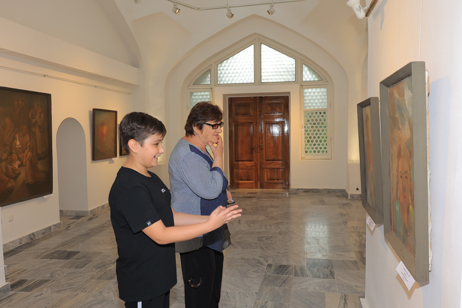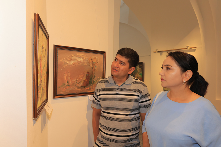 В экспозиции выставлено 65 творческих работ художника. В произведениях художника можно увидеть детскую чистоту, простодушие и изящность. Его картины “Лепешки, испеченные на свадьбу“, “Извозчик“, “Свадьба“, “Нежданный свет“, “Вечер в колхозе“, “Осень. Дынный рынок“ отображают национальные ценности и традиции узбекского народа.
