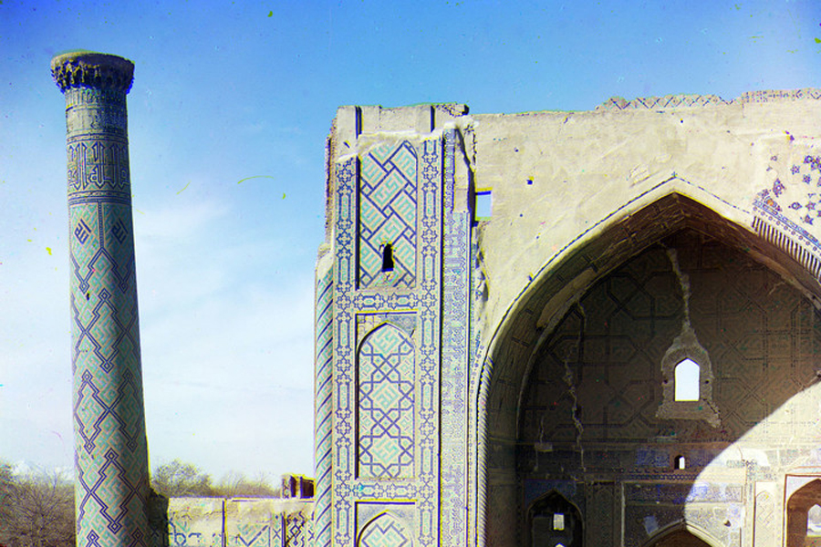 НА СНИМКАХ: Медресе Улугбека начала ХХ века (С. Прокудин-Горский) и современный вид.
