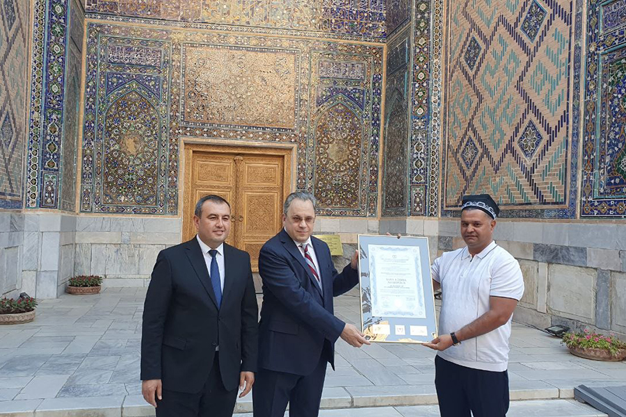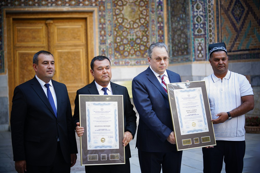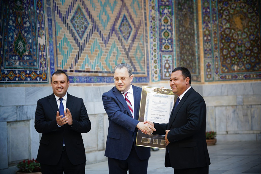 Сегодня в Самарканде в медресе Улугбека ансамбля Регистан состоялась церемония вручения сертификата о включении во «Всемирный список объектов особой туристской привлекательности».