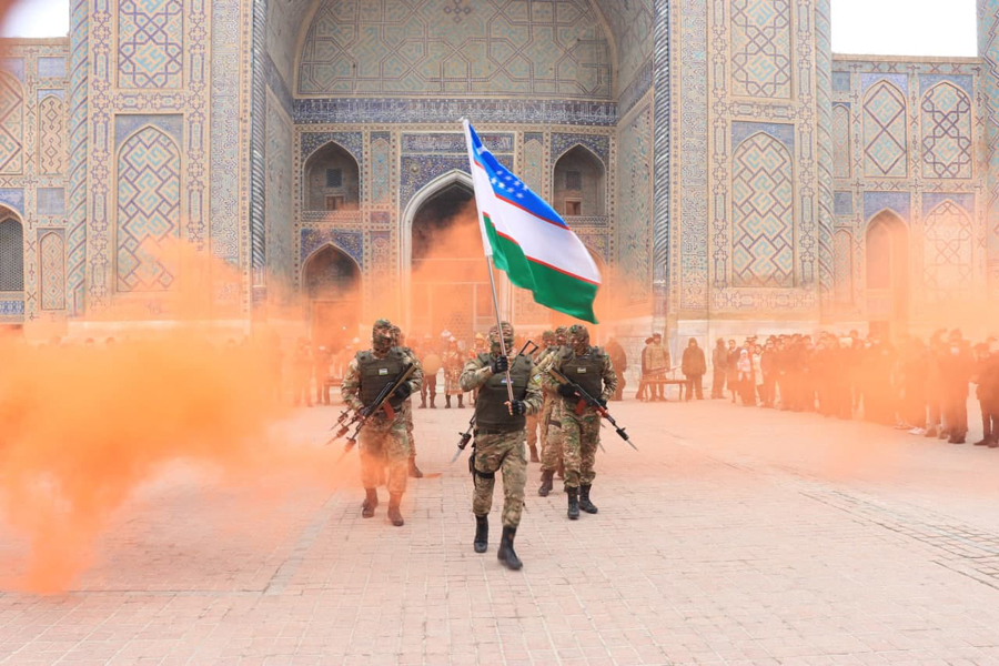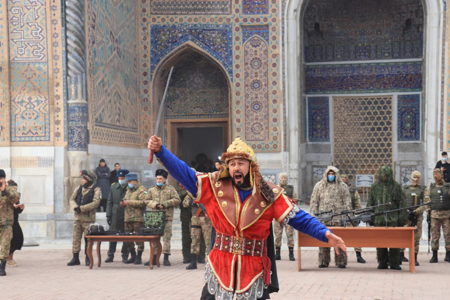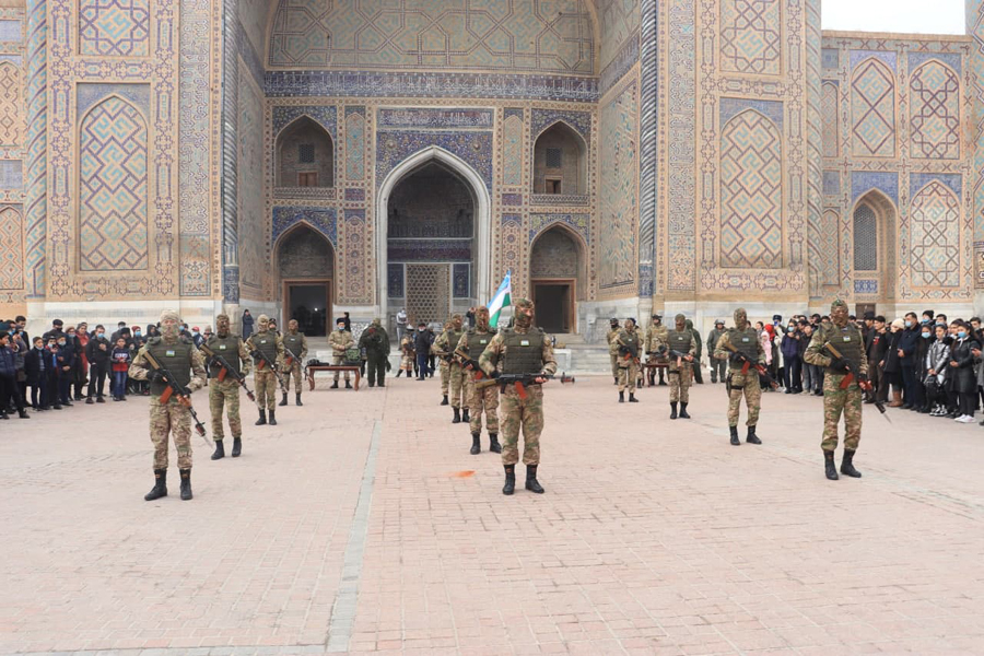На площади Регистан прошел военно-патриотический фестиваль, организованный 13060-й воинской частью и Самостоятельной дирекцией Ансамбля Регистан.