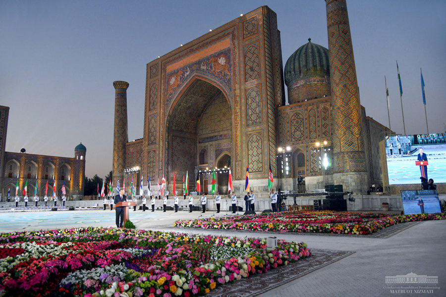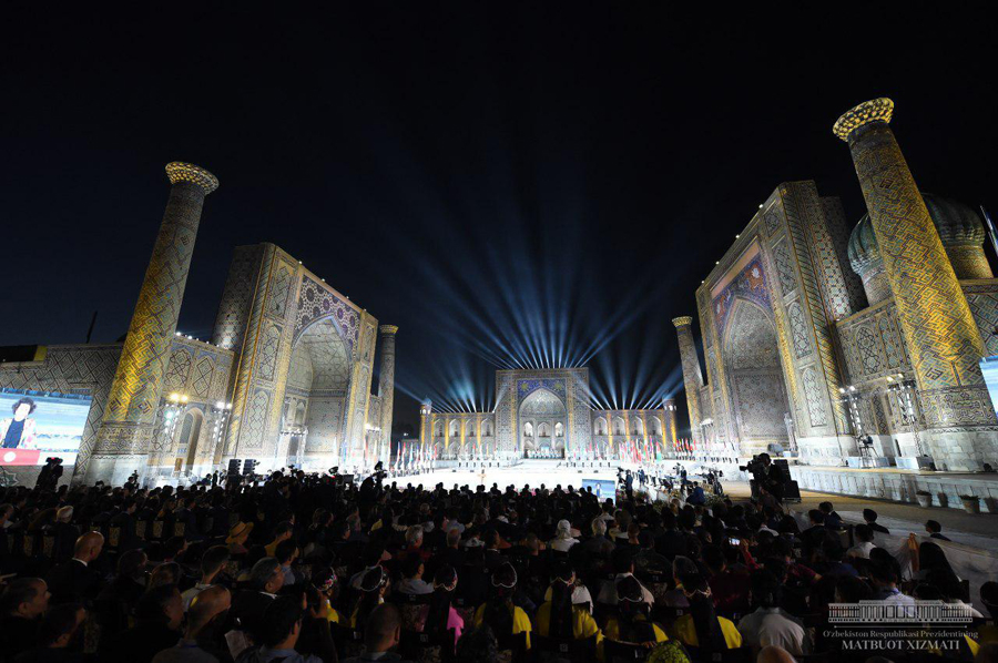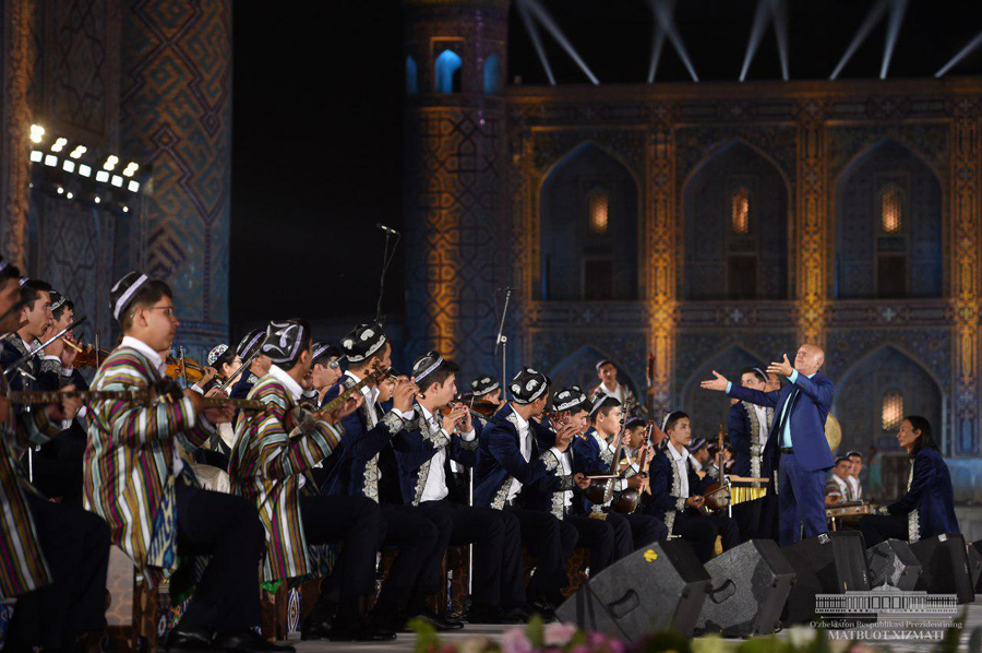 Выступая также с речью, Генеральный директор ЮНЕСКО Одри Азуле отметила, что Самарканд олицетворяет мощь великого государства Амира Темура, а площадь Регистан отражает расцвет при Мирзо Улугбеке. Это наследие веками притягивало к себе ученых, ремесленников, деятелей искусства. Высокая гостья подчеркнула, что сохранение общечеловеческого достояния, развитие музыкального искусства как универсального языка межкультурного диалога входит в задачи ЮНЕСКО, и организация стремится к развитию полномасштабного сотрудничества с Узбекистаном в этом направлении.