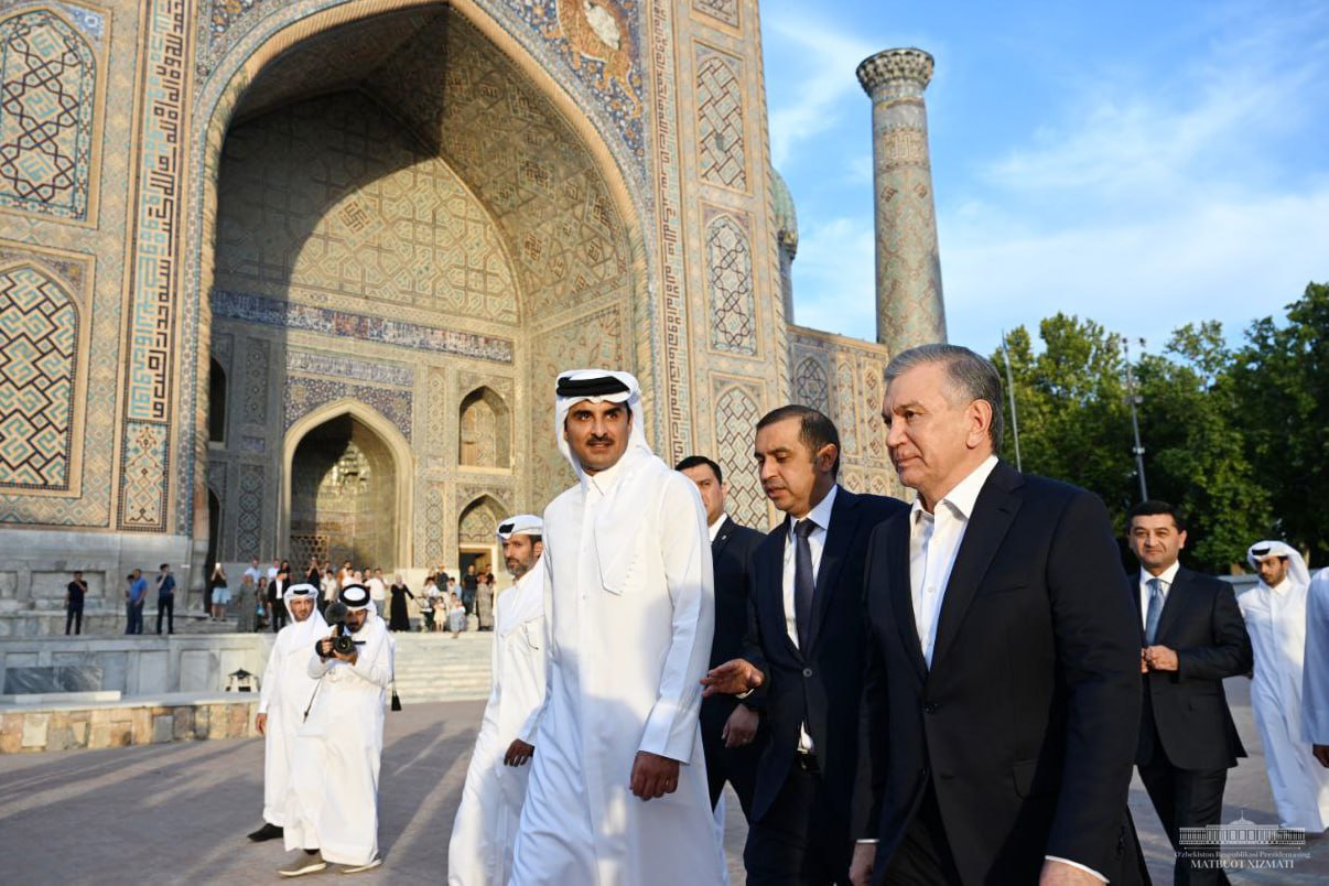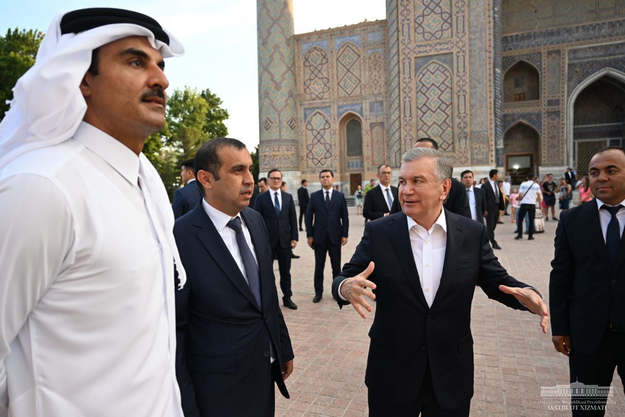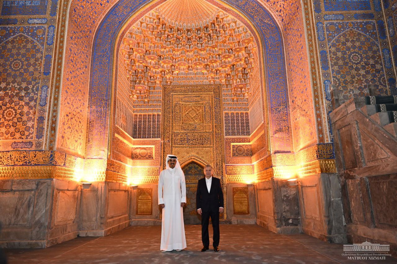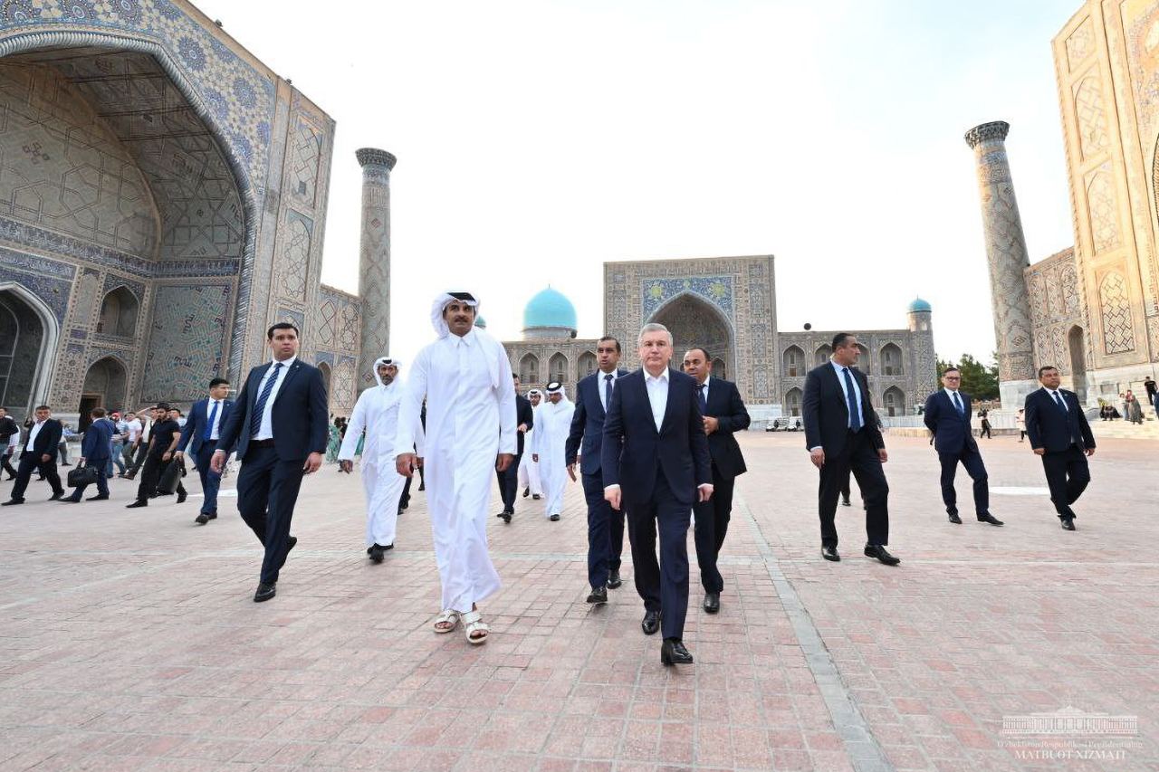 Qatar Davlati Amiri shayx Tamim bin Hamad Ol Soniy O‘zbekiston Respublikasi Prezidenti Shavkat Mirziyoyev hamrohligida qadim va betakror Samarqand shahrining ulug‘vor me’moriy obidalarini ko‘zdan kechirdi.