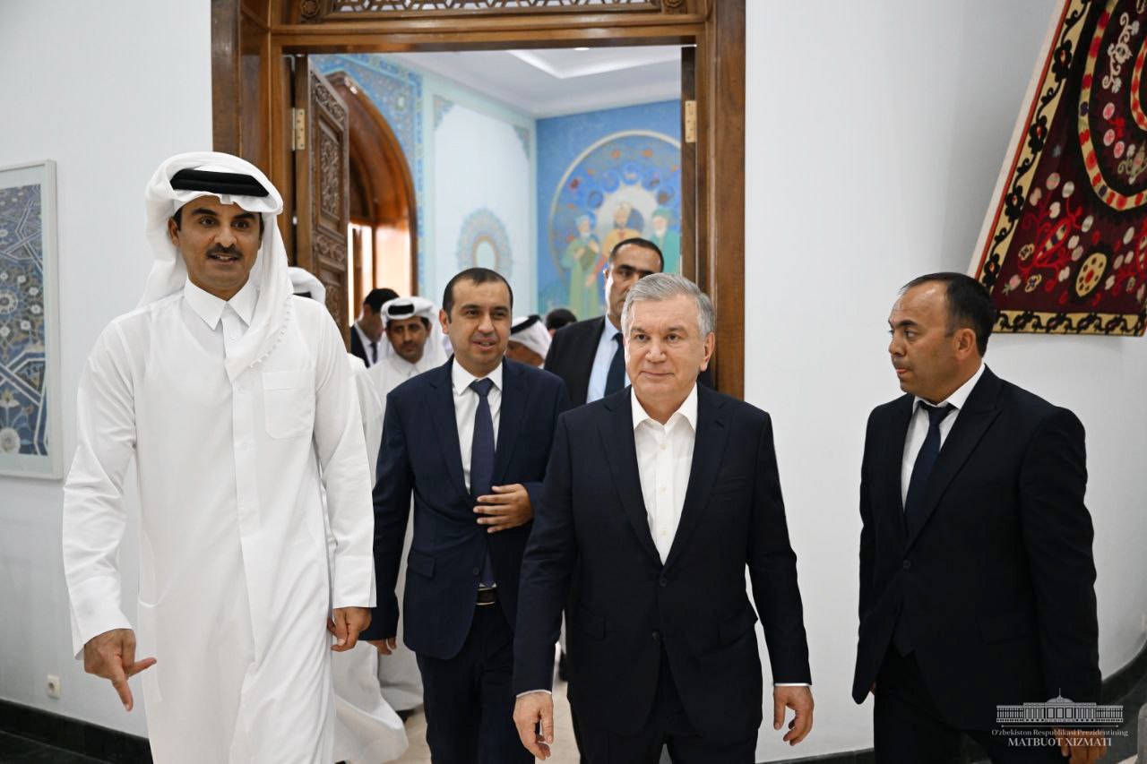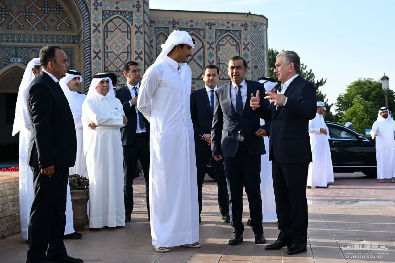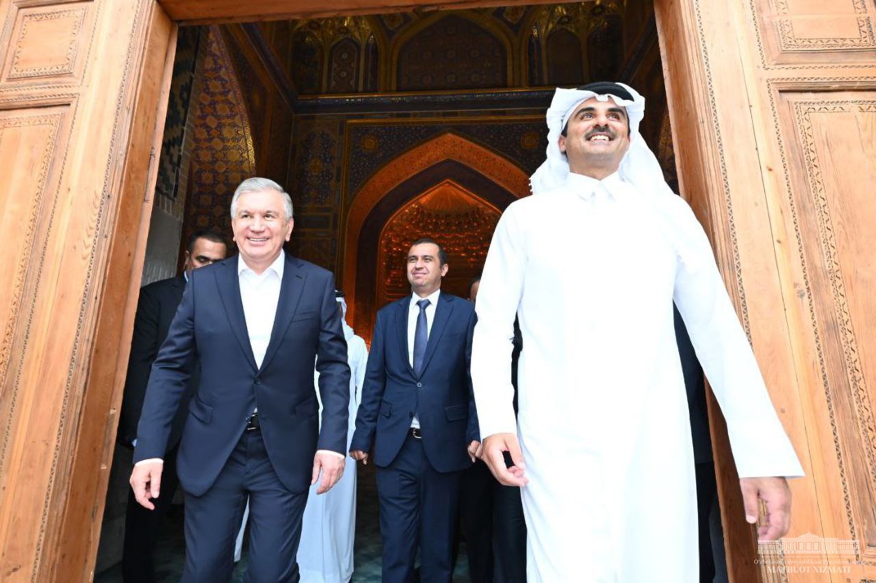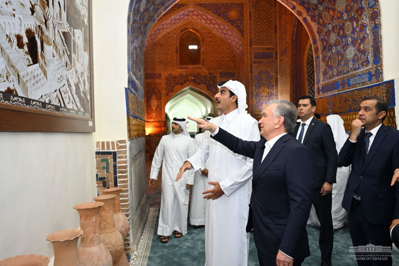 Qatar Davlati Amiri shayx Tamim bin Hamad Ol Soniy O‘zbekiston Respublikasi Prezidenti Shavkat Mirziyoyev hamrohligida qadim va betakror Samarqand shahrining ulug‘vor me’moriy obidalarini ko‘zdan kechirdi.
